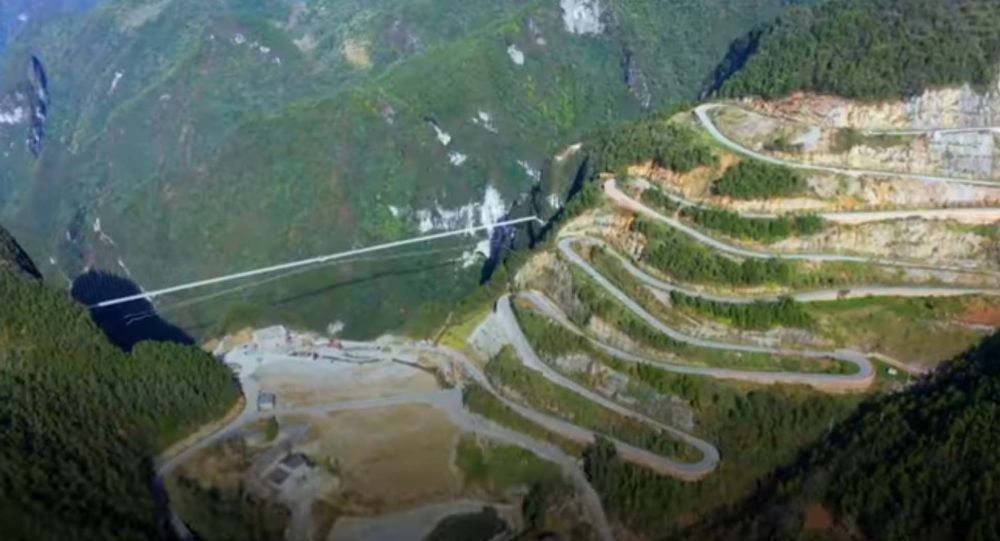 Горное шоссе и отвесные скалы: как выглядит новый стеклянный мост в Китае - видео