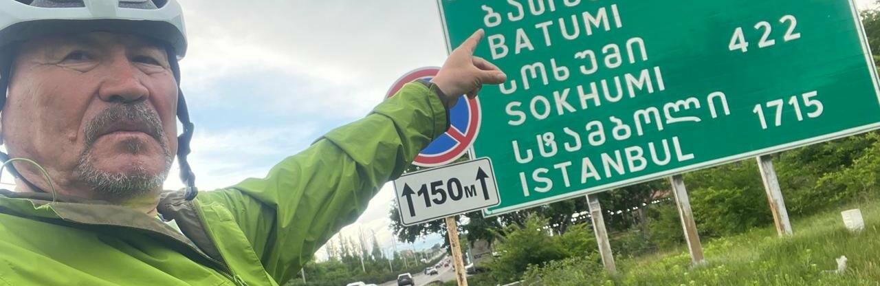 Уже в Грузии: Мангистауский велопутешественник пересёк границу