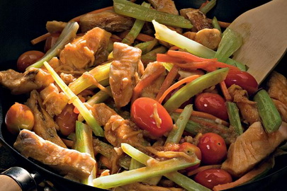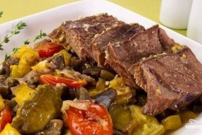 Свинина, запеченная с картофелем, помидорами и сыром
